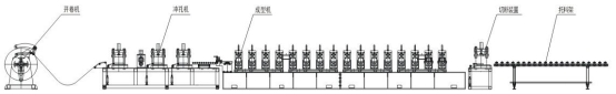 電氣罩殼自動(dòng)生產(chǎn)線該生產(chǎn)線由上料小車、開(kāi)卷機(jī)、入料導(dǎo)正、沖孔、切斷、輥壓成型機(jī)、成型剪、自動(dòng)碼垛、液壓系統(tǒng)、電氣控制系統(tǒng)組成。該生產(chǎn)線在線不停機(jī)沖孔、不停機(jī)切斷